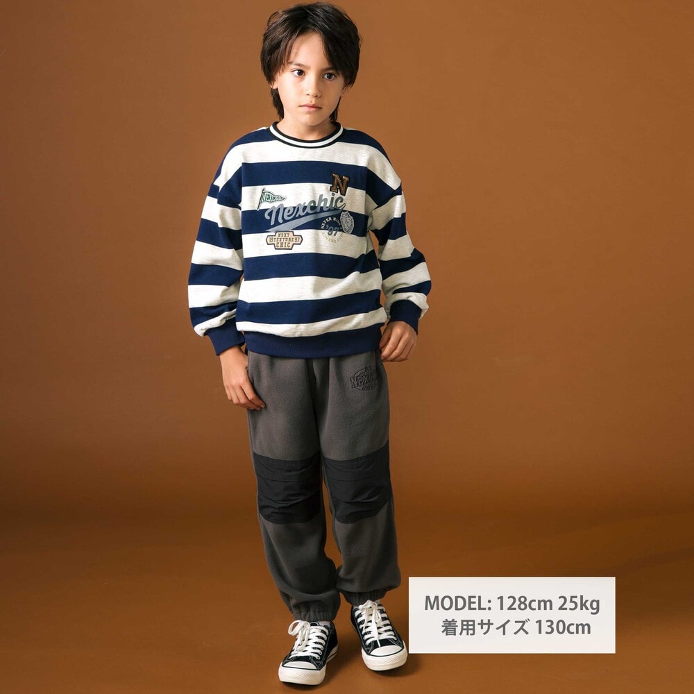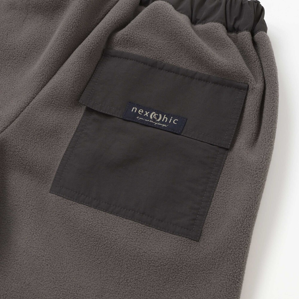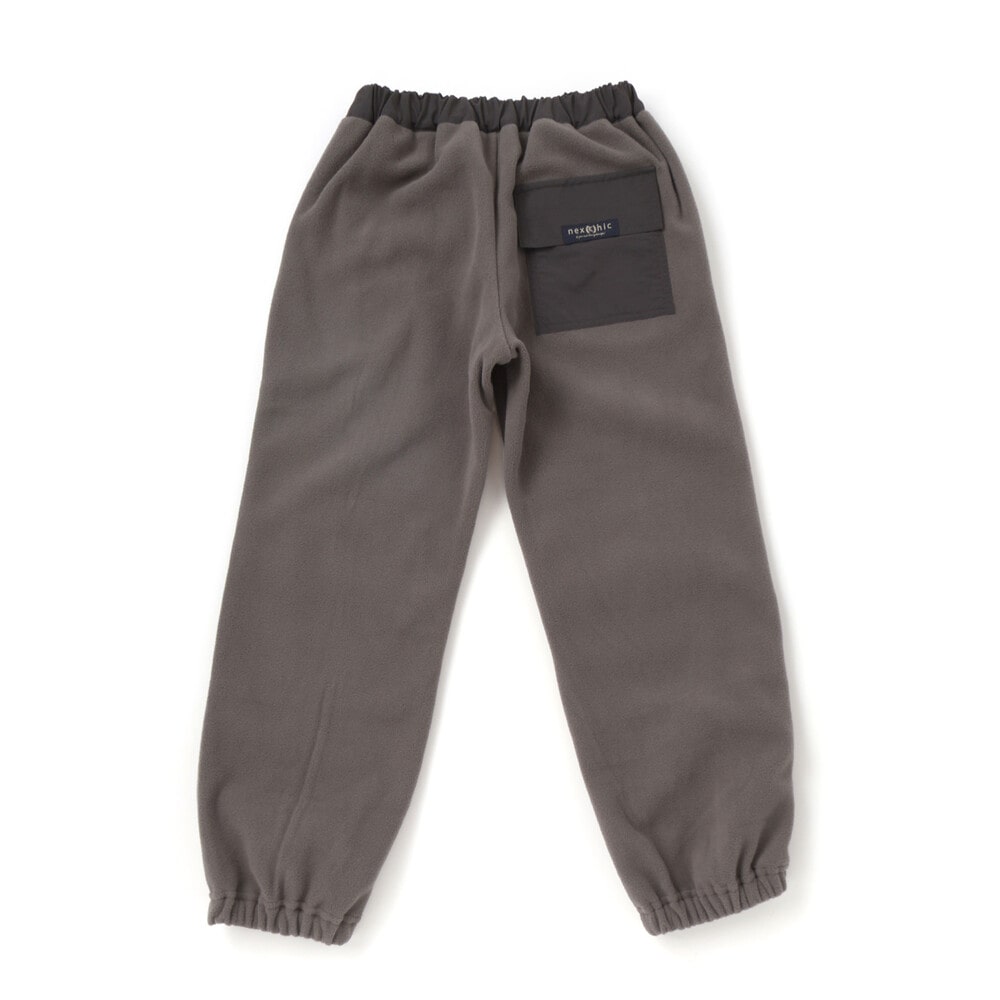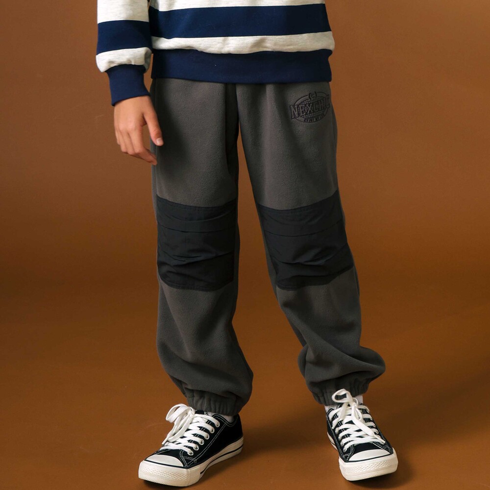 暖かくて軽いフリース素材とハリ感のあるタフタ素材の切り替えデザインの男の子用パンツ。
