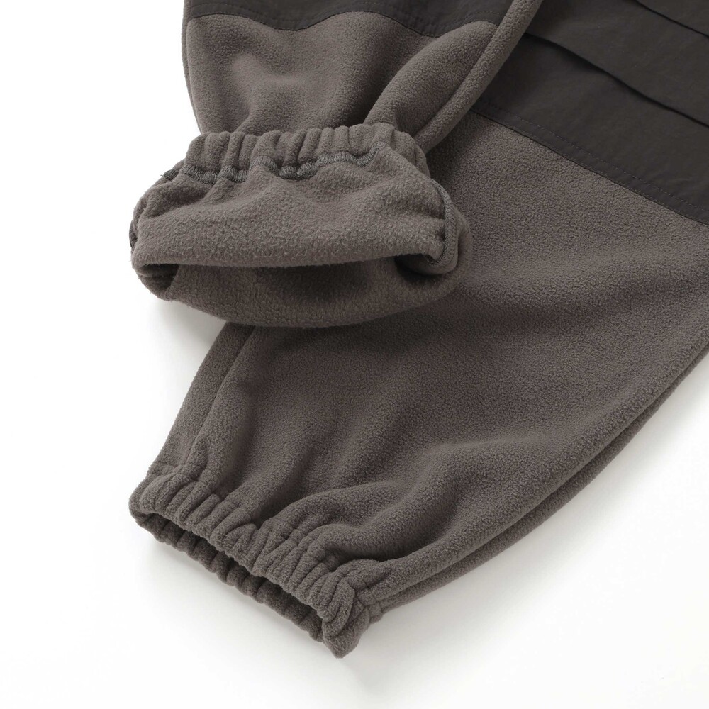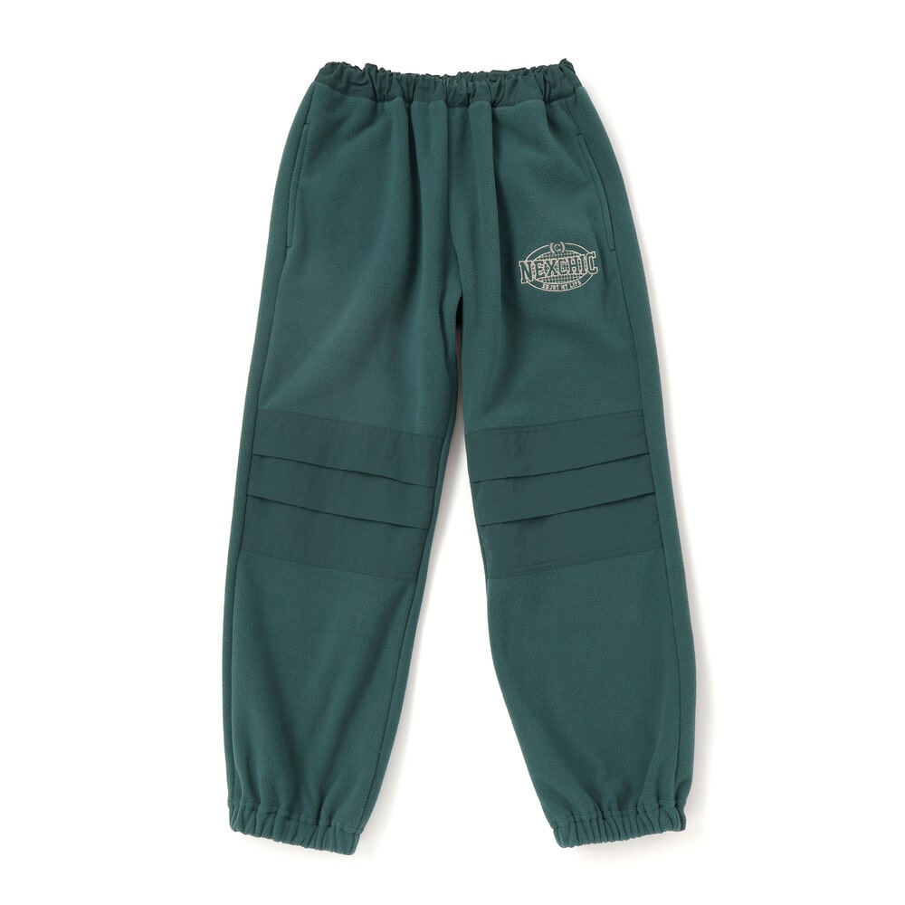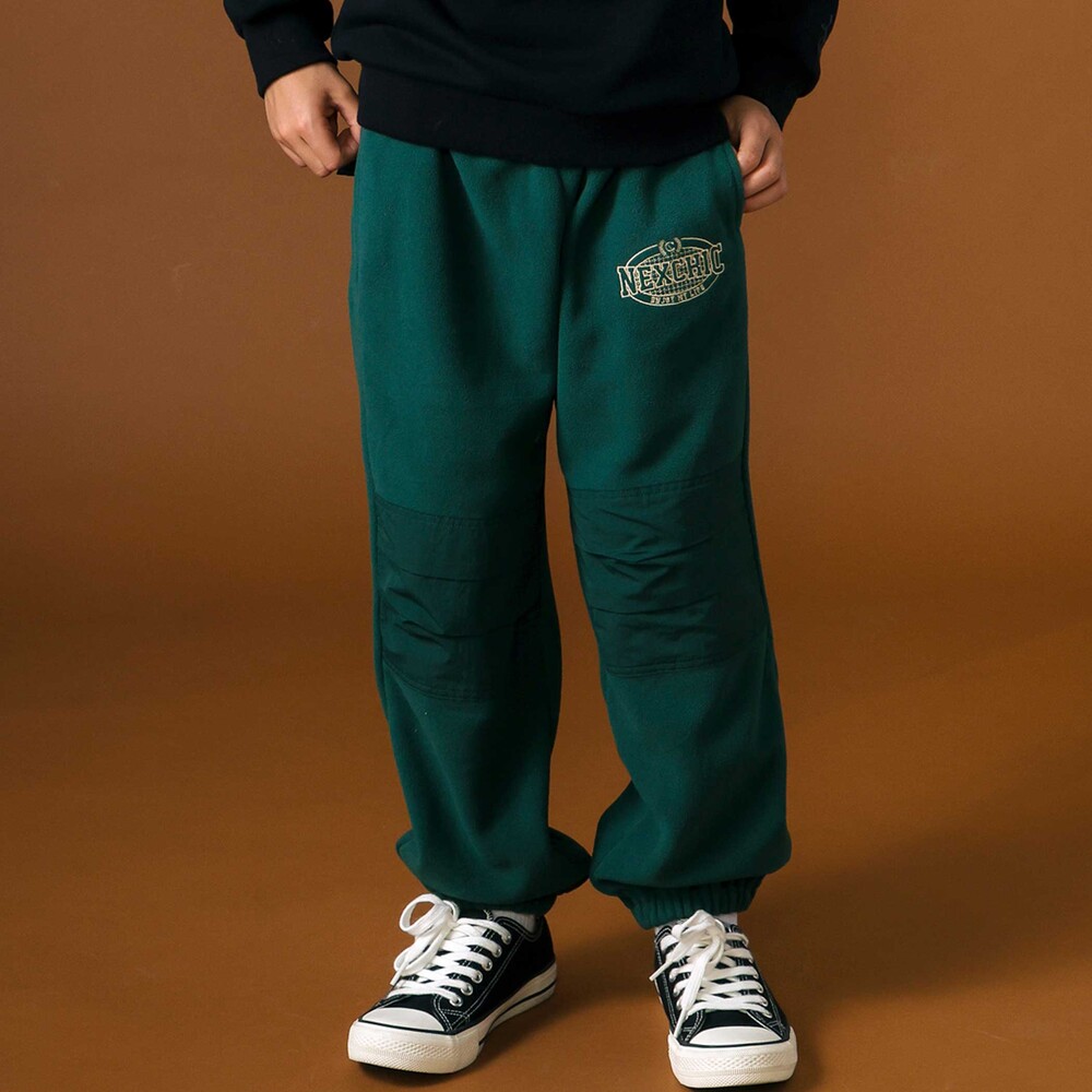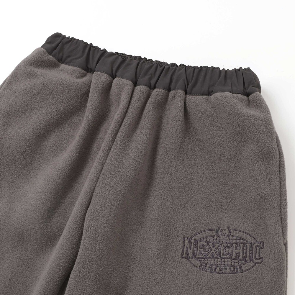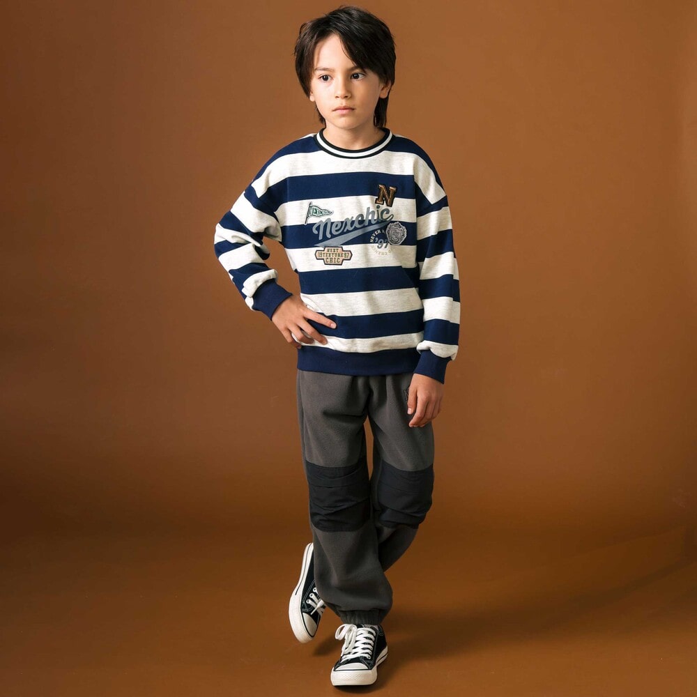 暖かくて軽いフリース素材とハリ感のあるタフタ素材の切り替えデザインの男の子用パンツ。