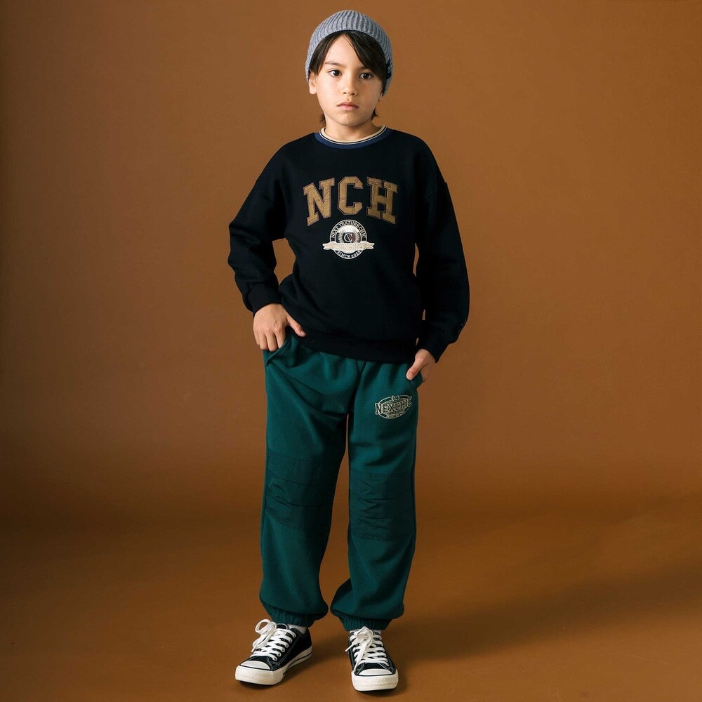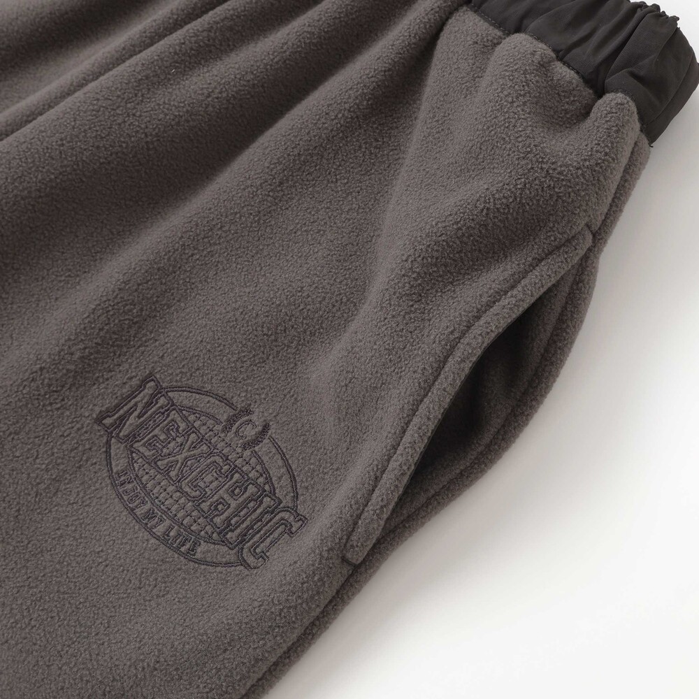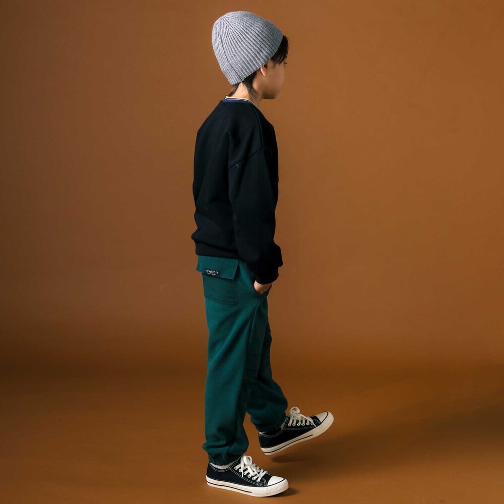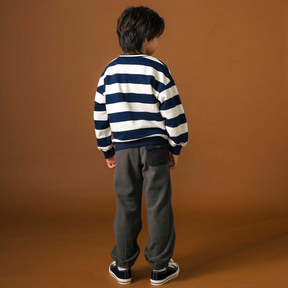 暖かくて軽いフリース素材とハリ感のあるタフタ素材の切り替えデザインの男の子用パンツ。