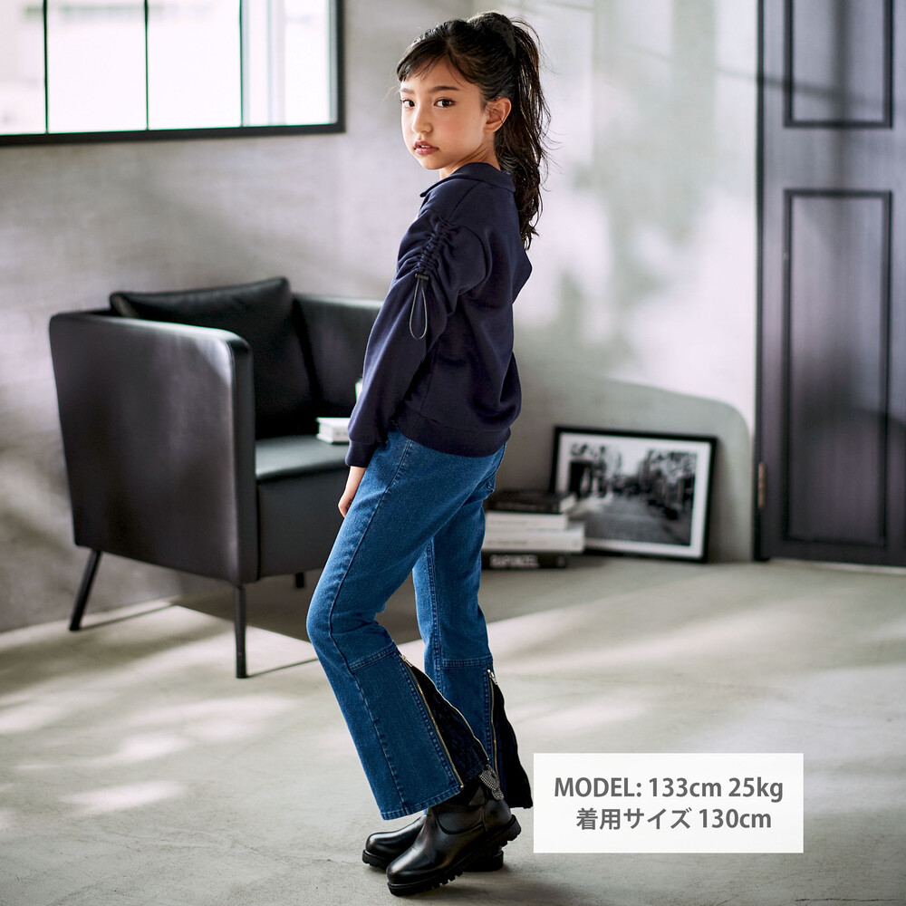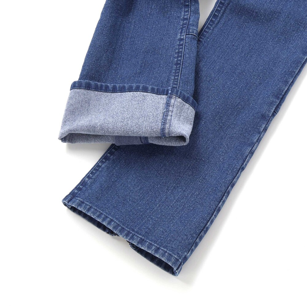 裏起毛デニム素材は、カジュアルな風合いの中にもぬくもりを感じられ、やさしい穿き心地が魅力です。