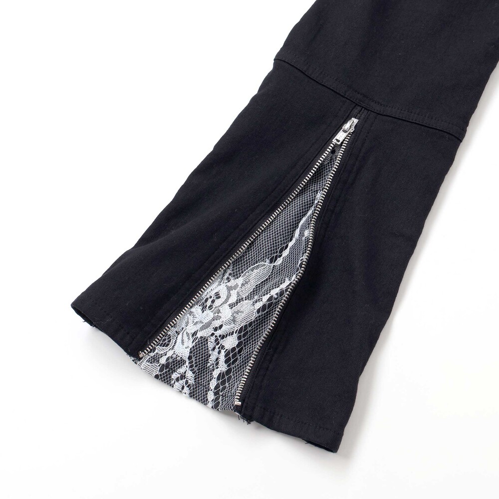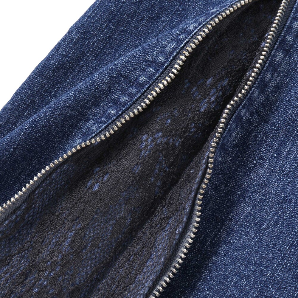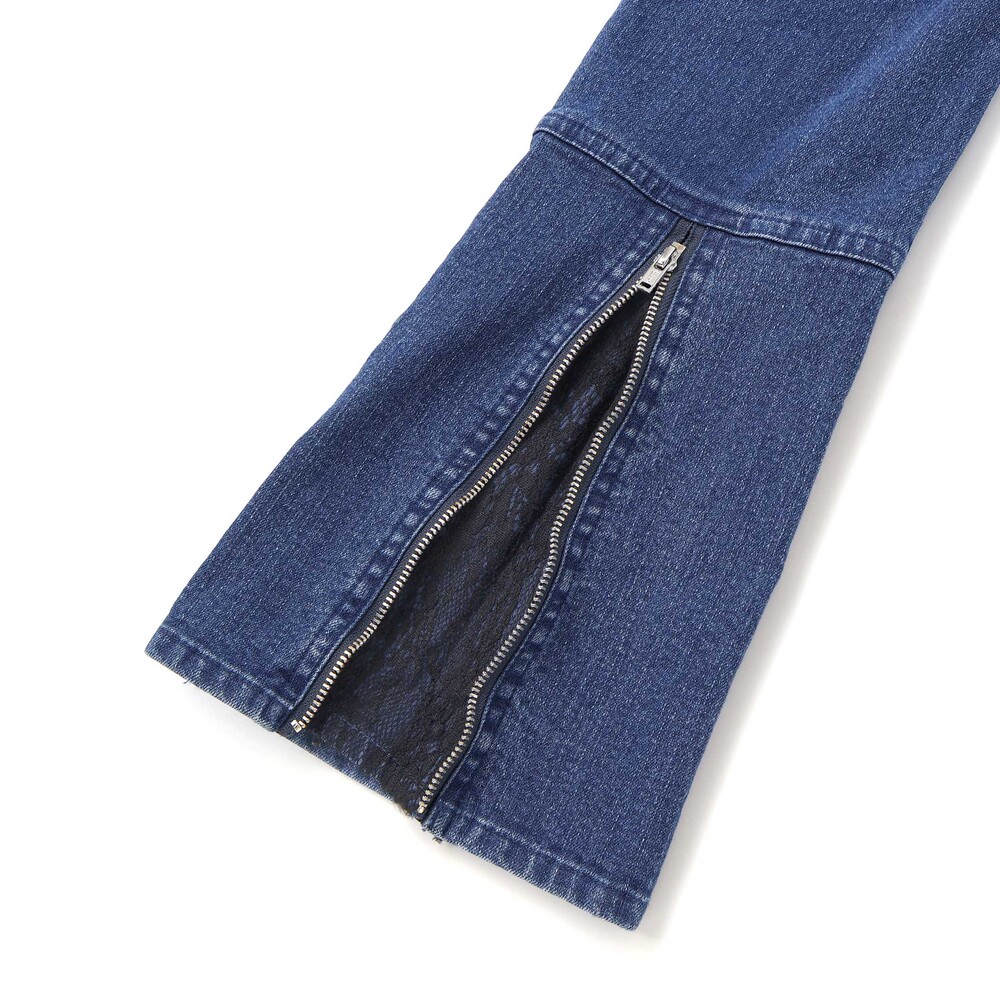 後ろ裾にはファスナー付きのマチがあり、そこに繊細なレースをあしらって、さりげなくフェミニンなムードをプラス。