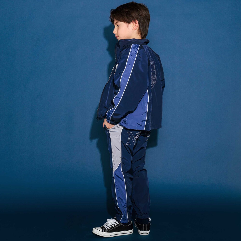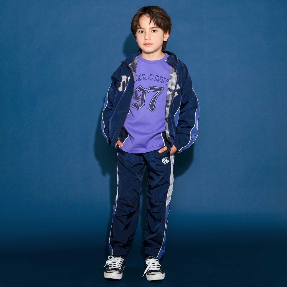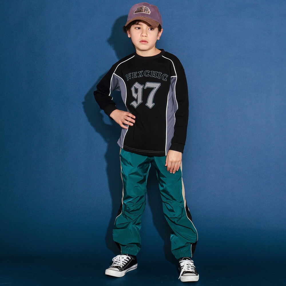 軽やかなタフタ素材を使ったワイドシルエットの男の子用パンツ。