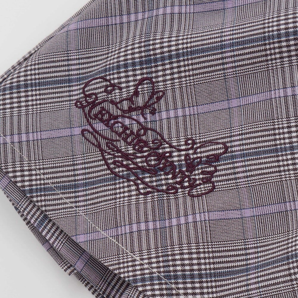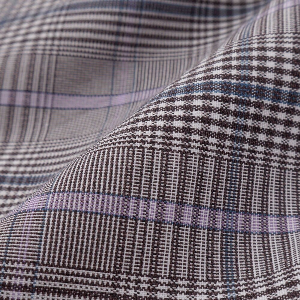ネイビーはカジュアルなデニム素材、ブラウン系は上品なベージュ系チェック柄のTRツイルを使用しています。