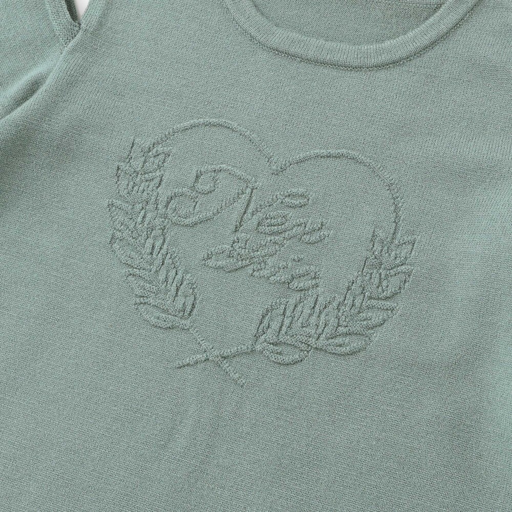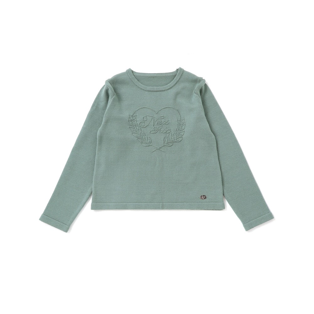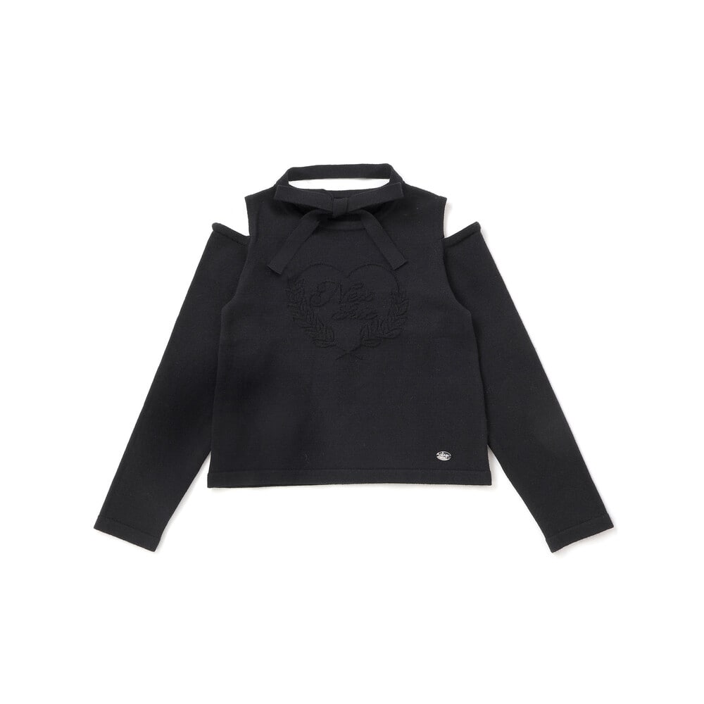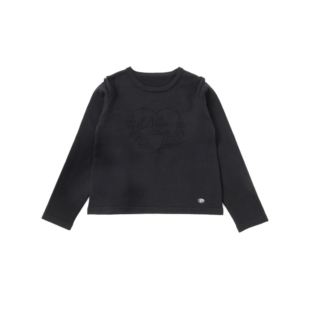 大きなロゴとハートのジャカード柄が目を引く一枚。