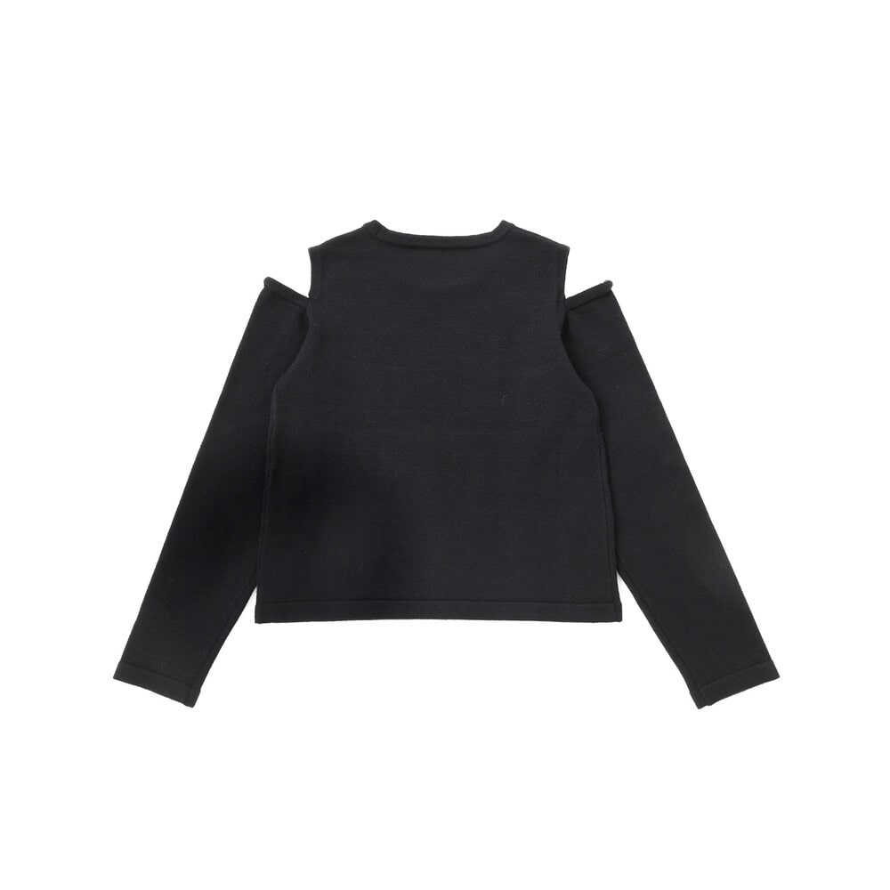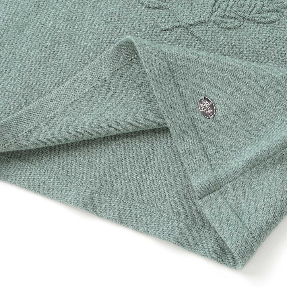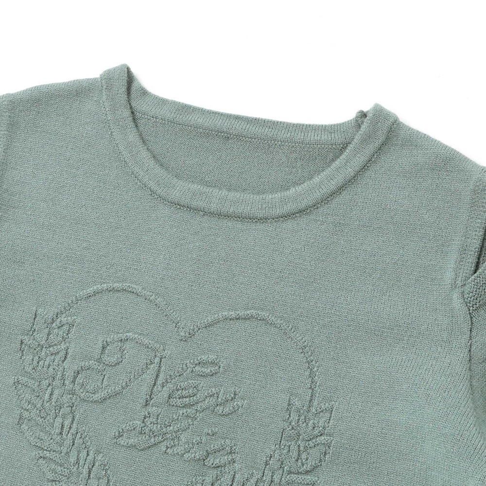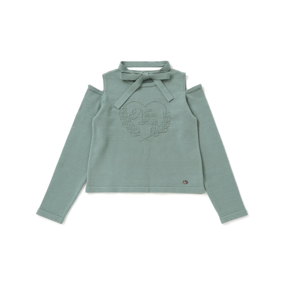 大きなロゴとハートのジャカード柄が目を引く一枚。