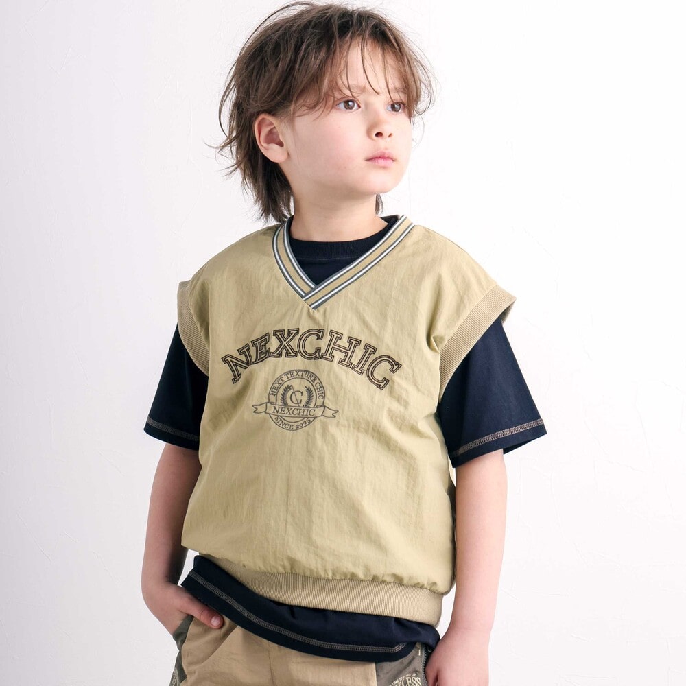 Vネックが映える男の子用タフタベスト。