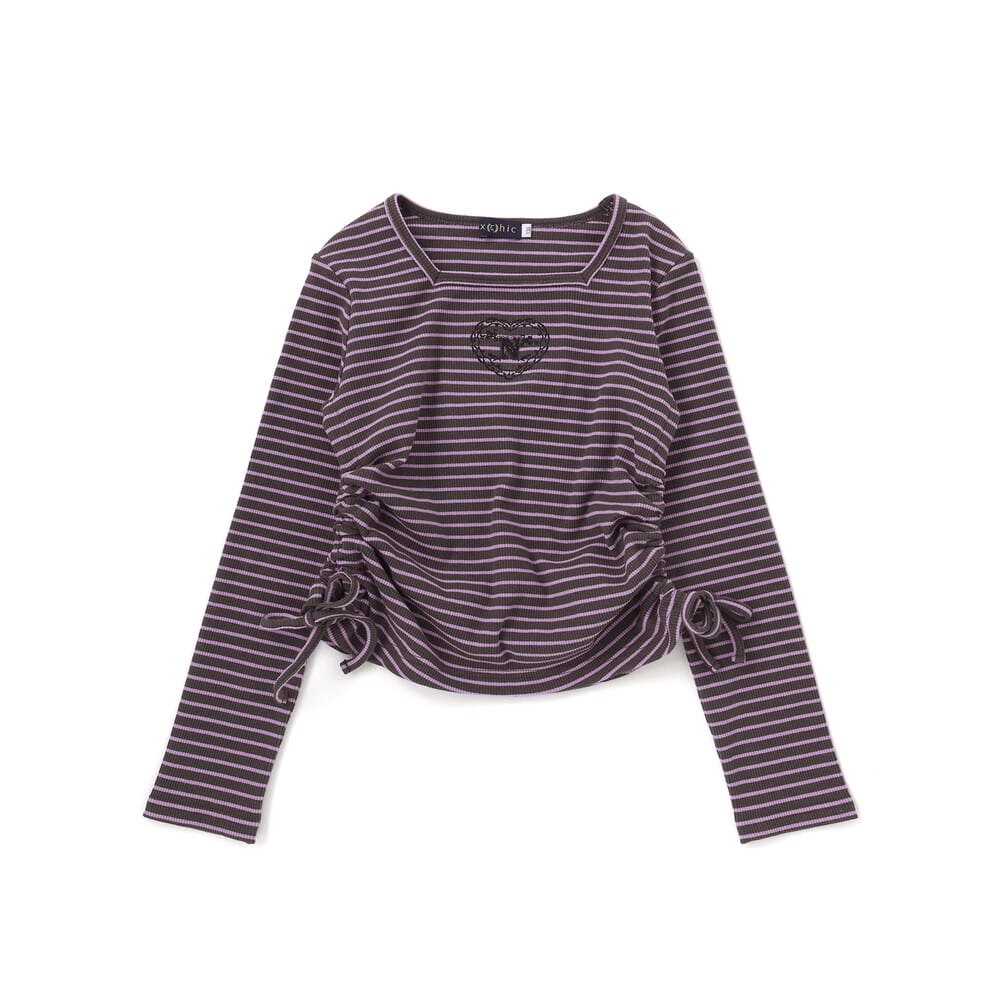 ガーリーな雰囲気を楽しめるスクエアネック長袖Tシャツ。