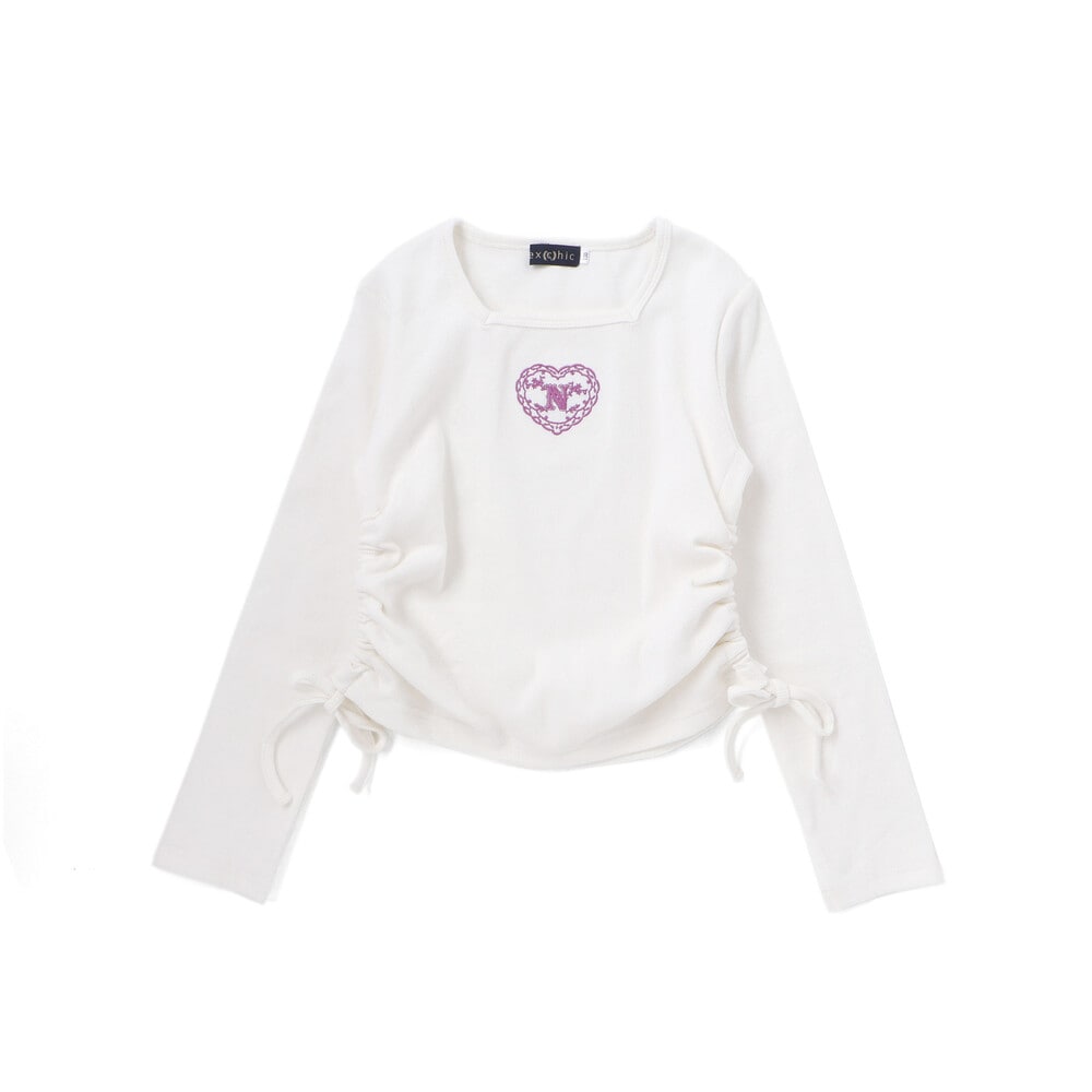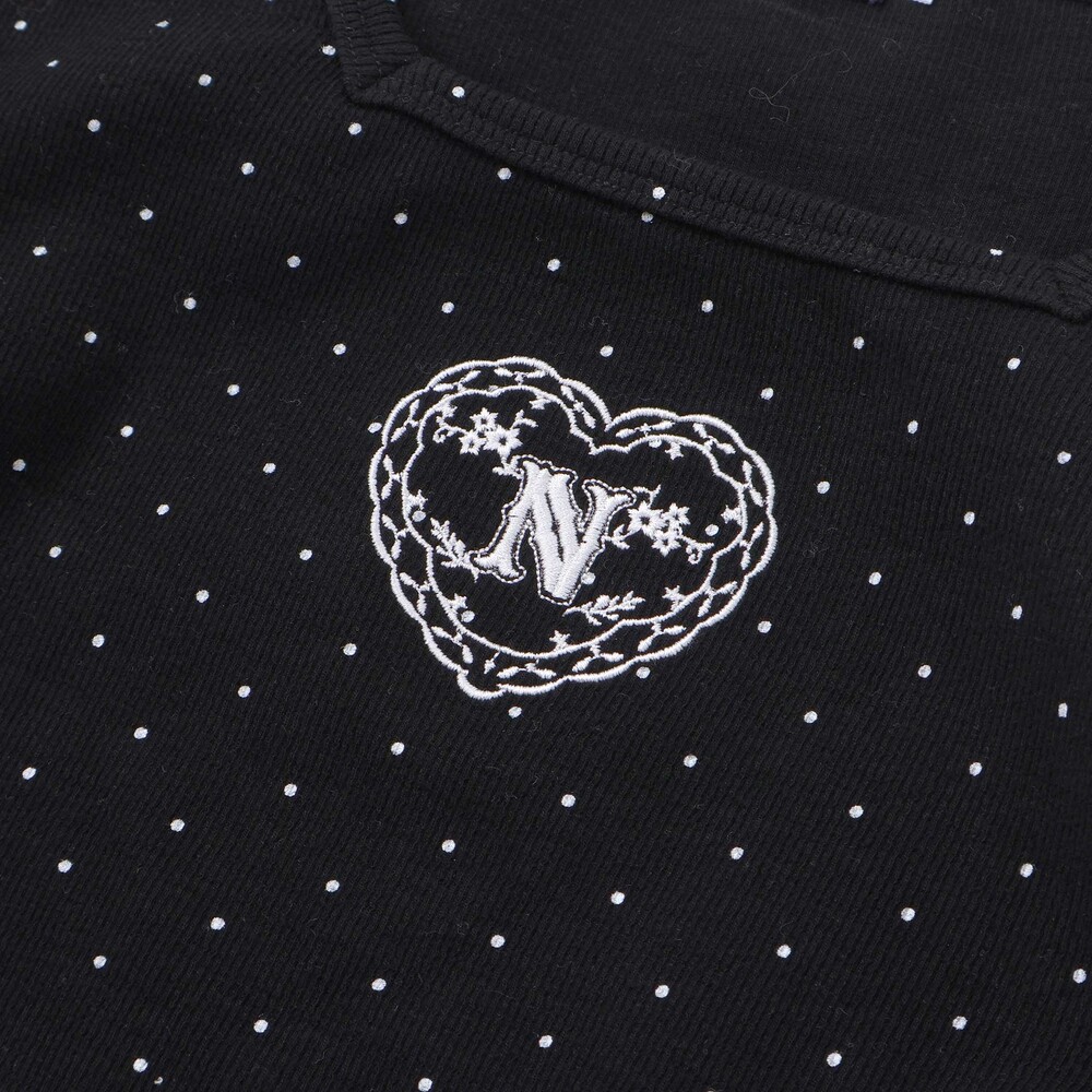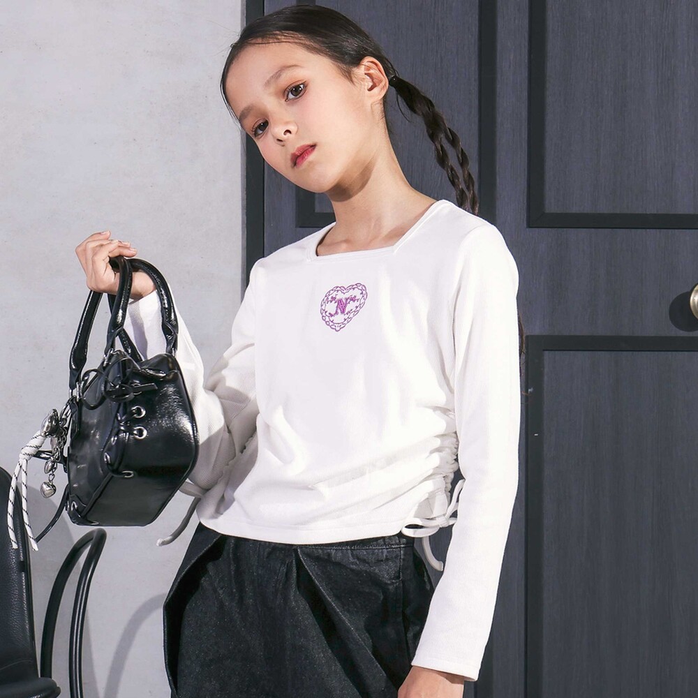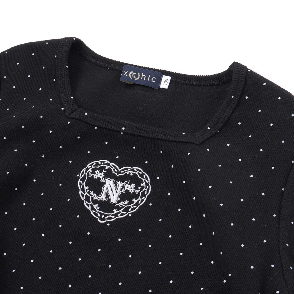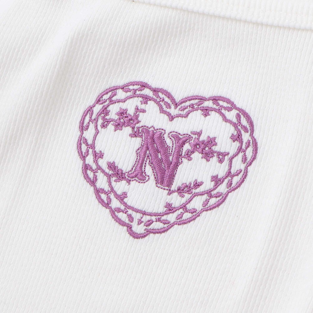 胸元にはハートとロゴの刺しゅうが施され、さりげないポイントに。