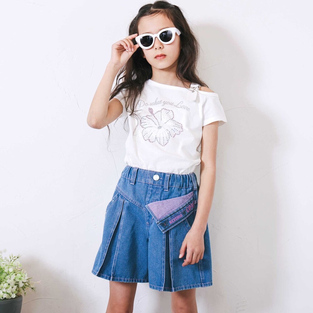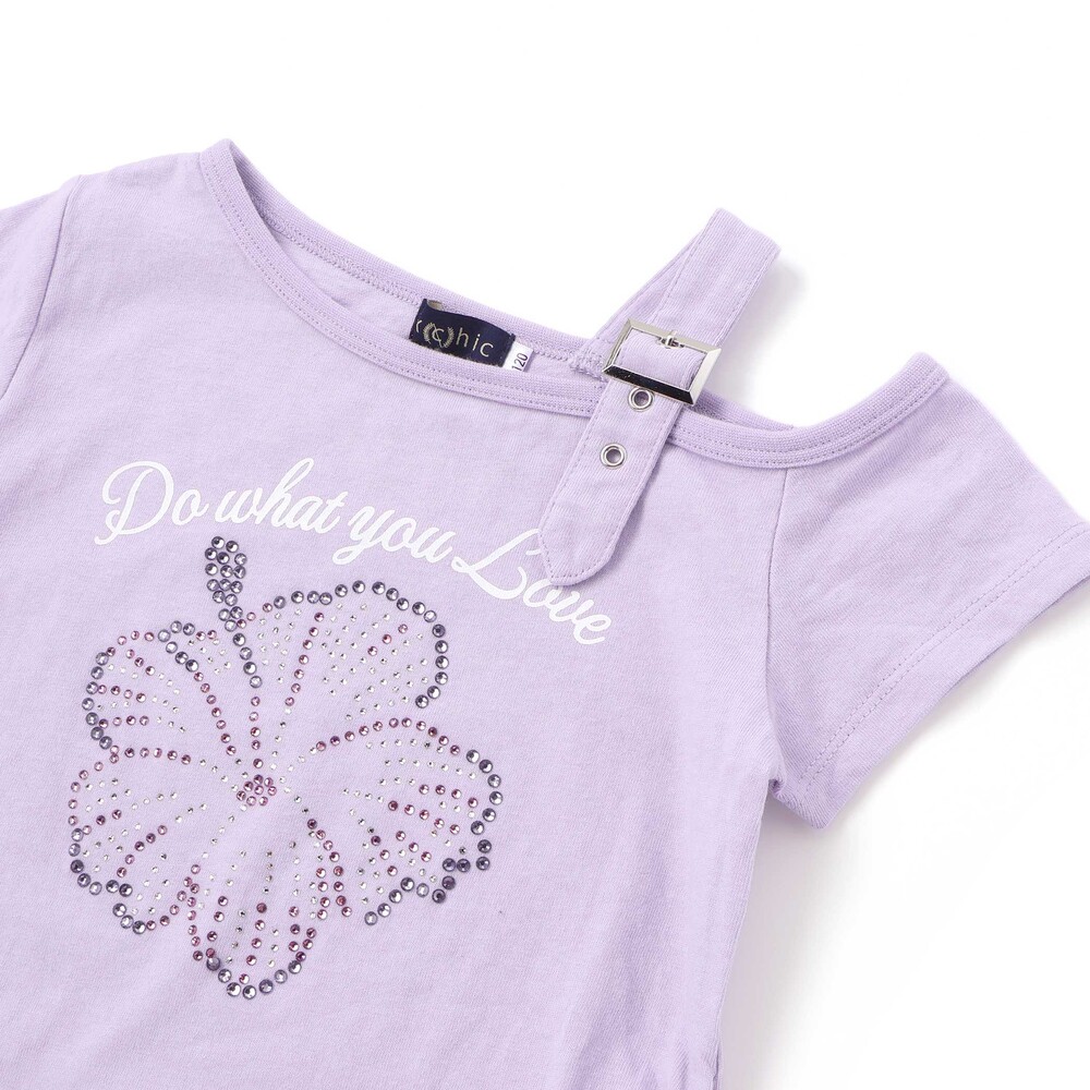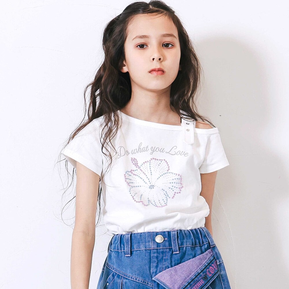 トレンドを詰め込んだ女の子用ワンショルダー半袖Tシャツ。
