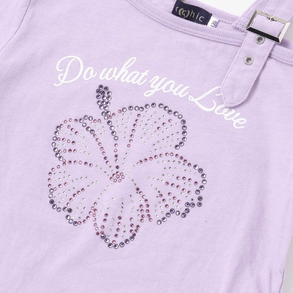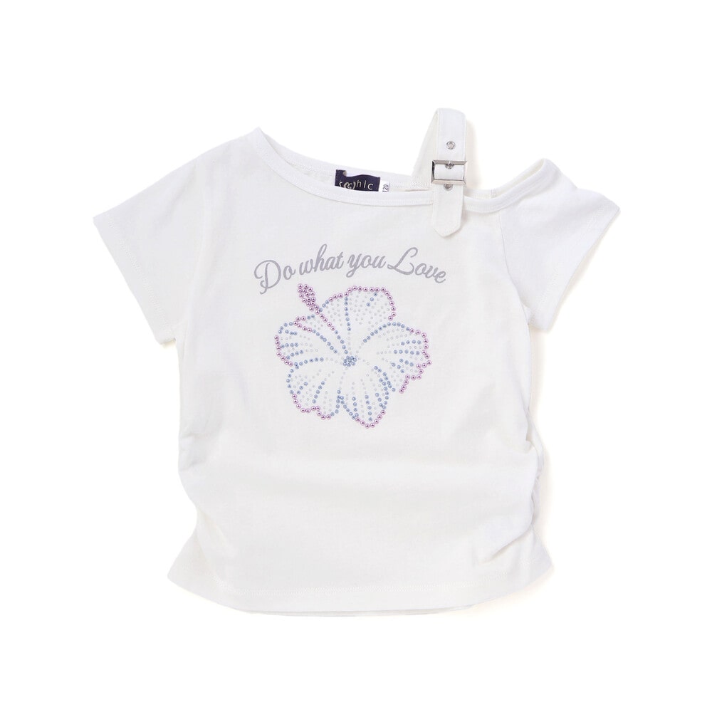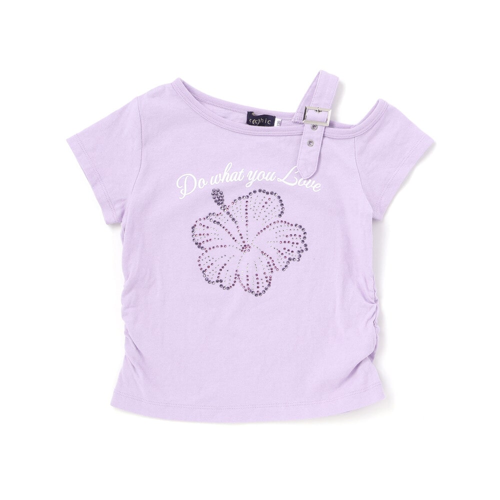胸元にはハイビスカスをモチーフにした鮮やかなグラフィックとメッセージをプリント。