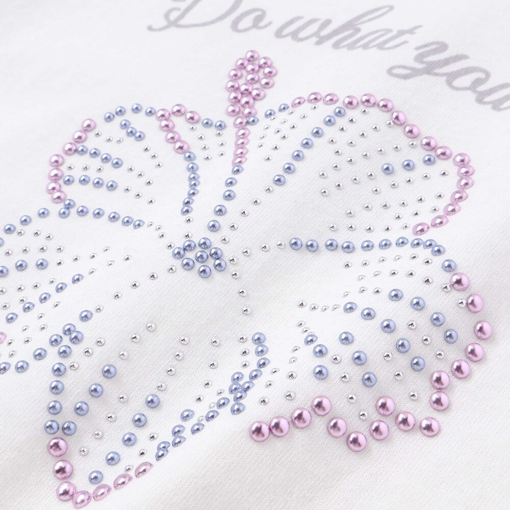 さらに、光を反射してキラリと輝くホットフィックスを散りばめ、夏の日差しに映える贅沢なデザインに仕上げています。