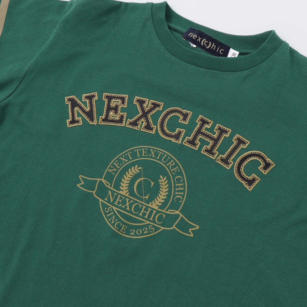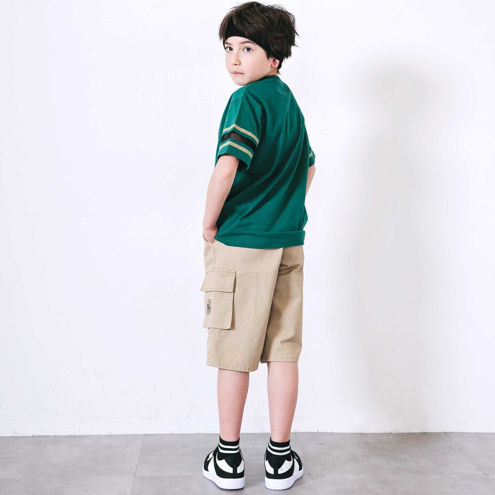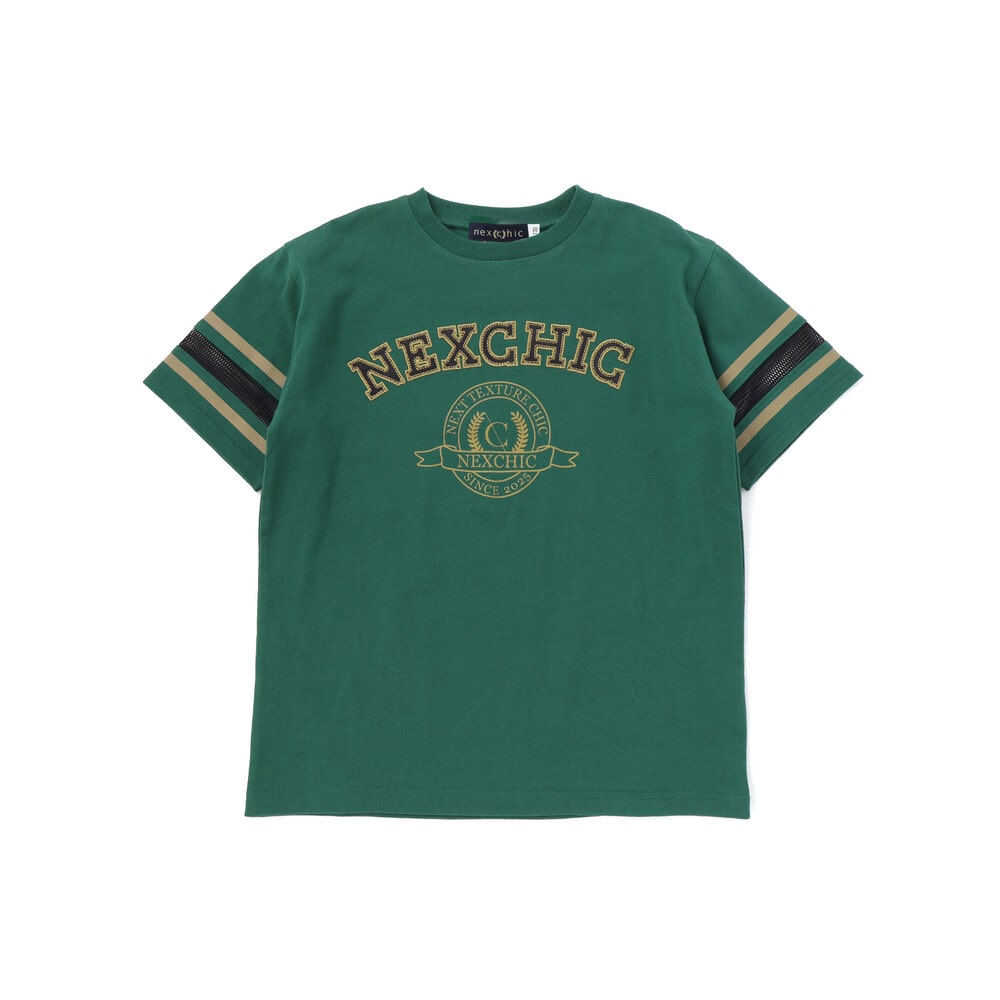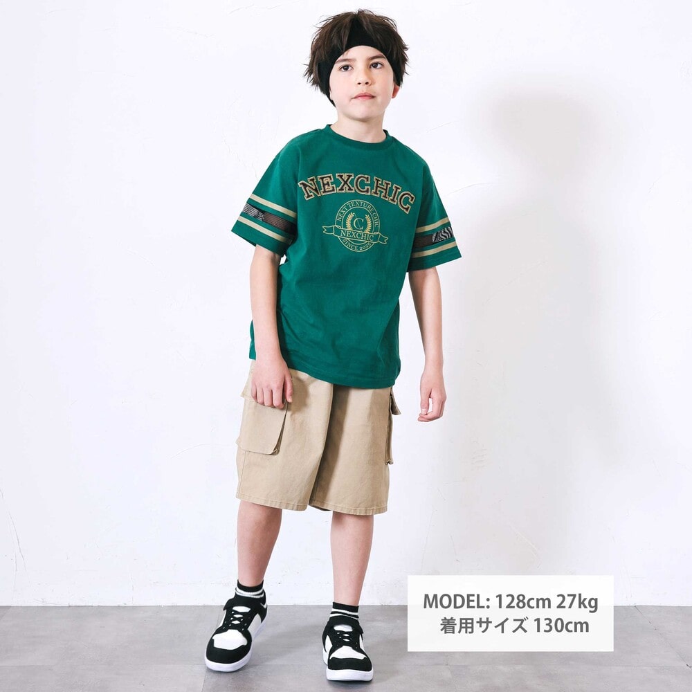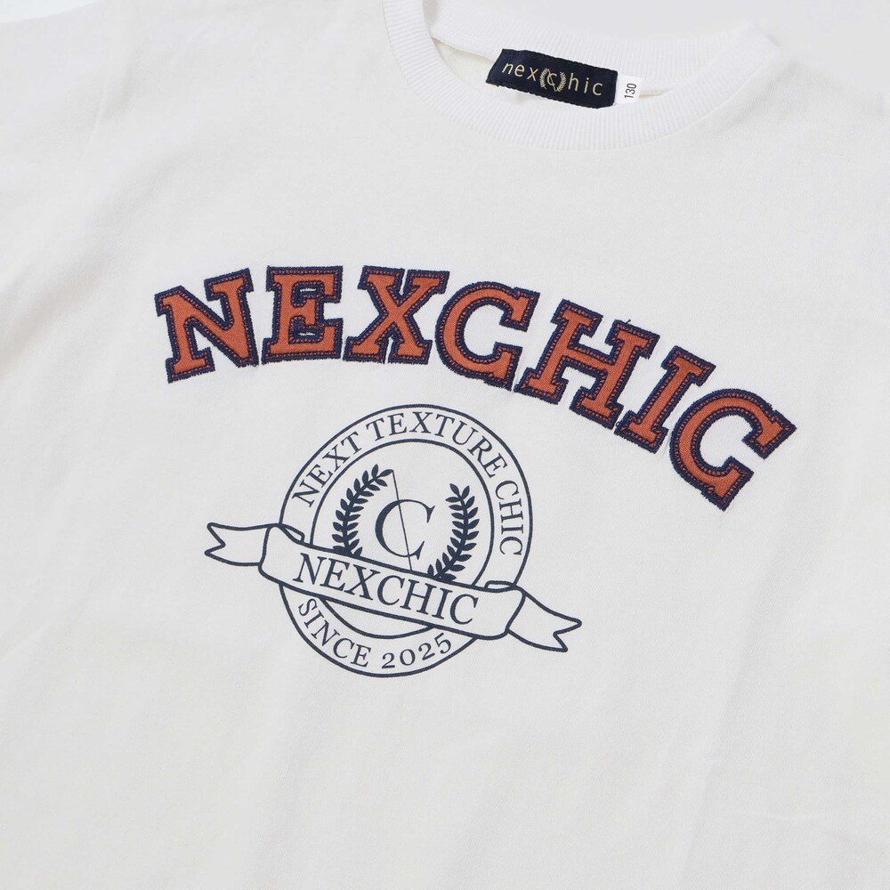 カレッジ風パッチが目を引く男の子用半袖Tシャツ。