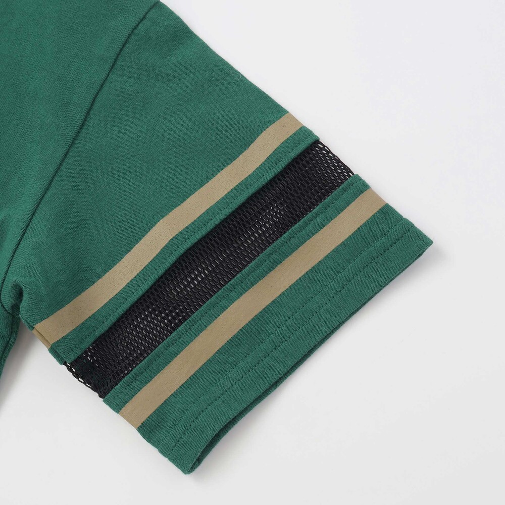 袖部分をメッシュ素材で切り替えた、アクティブな印象のデザインです。