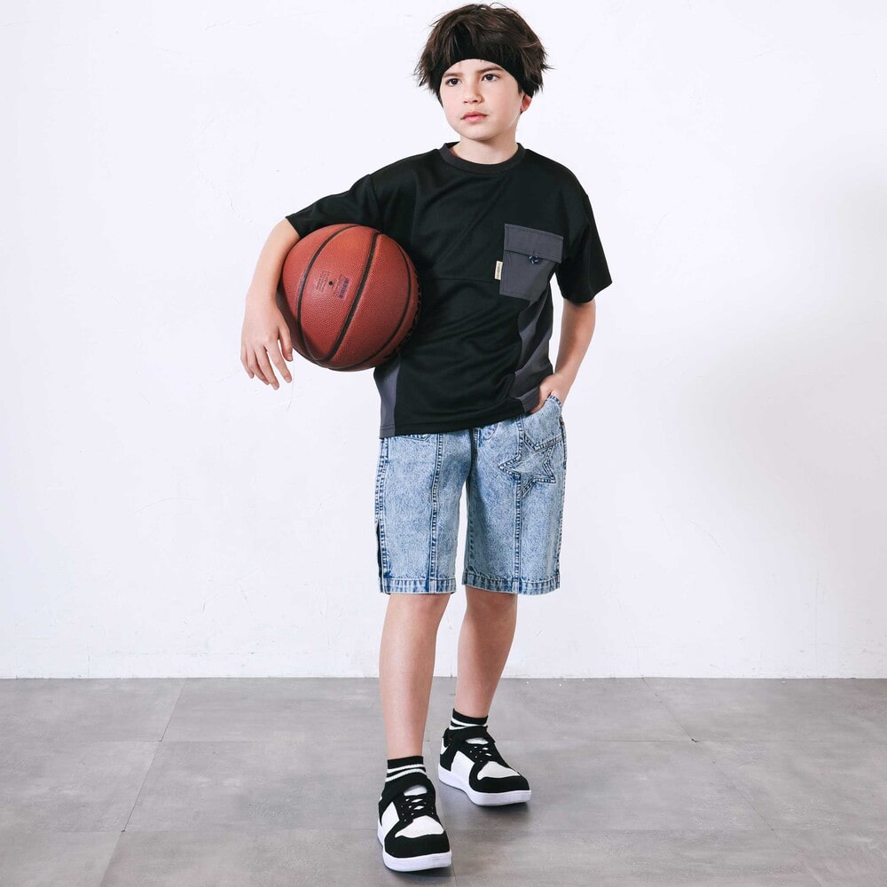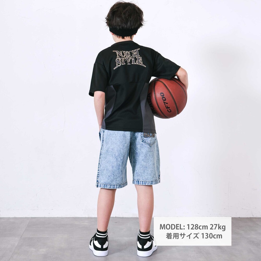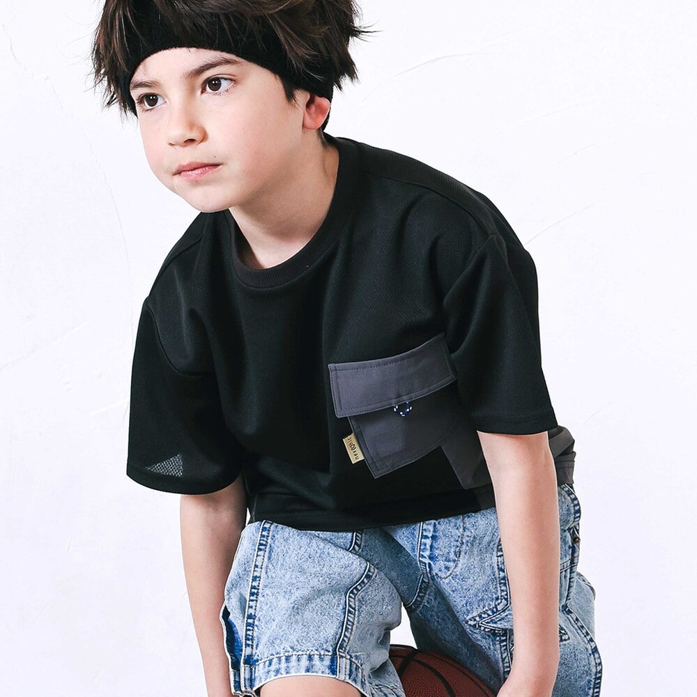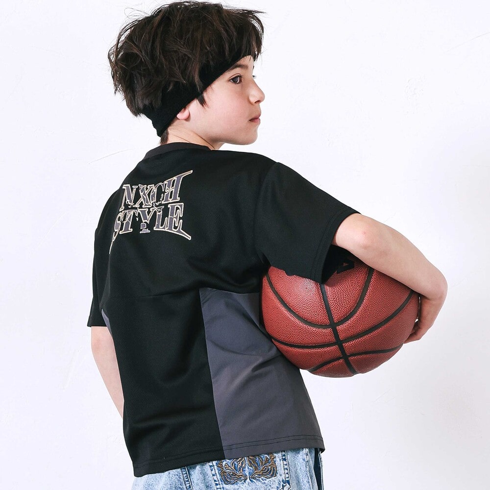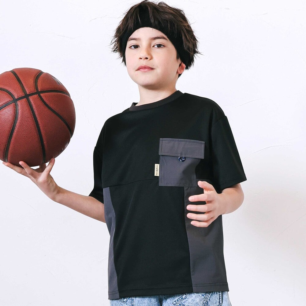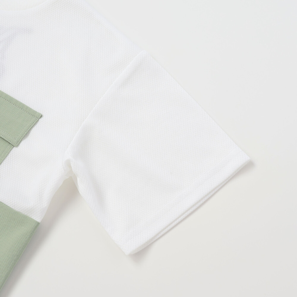 涼しげなメッシュとタフタを掛け合わせた男の子用半袖Tシャツ。