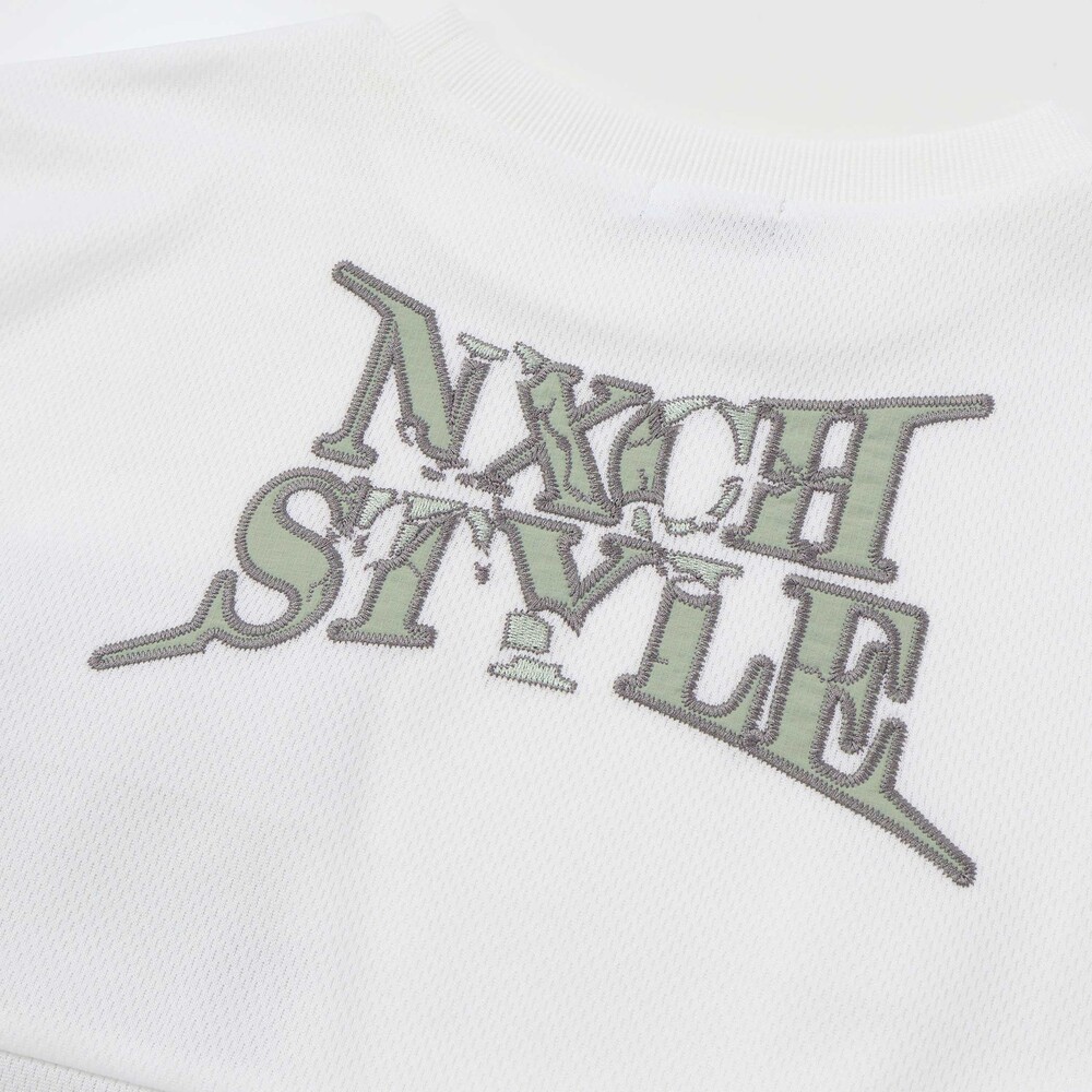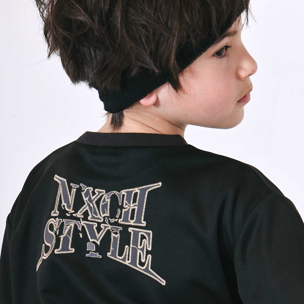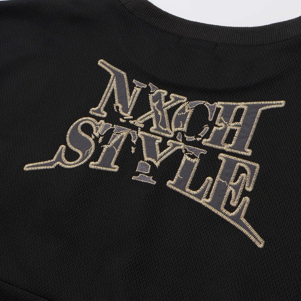 背中には、ひび割れたような力強いフォントが目を引く「NXCH STYLE」の刺しゅうを大胆に配置。