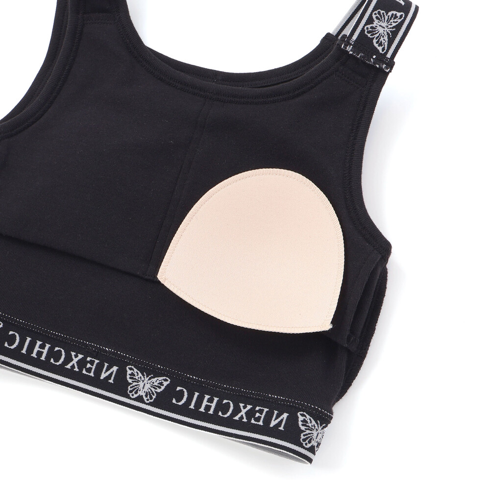 胸元には取り外し可能なパットが付いており、成長期のデリケートな時期でも1枚で安心して着用いただけます。